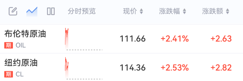 4月6日早间,原油期货价钱再度走强。好意思油盘初涨超3%,一度站上115好意思元/桶;布油同步拉升,涨超111好意思元/桶。好意思油、布油涨幅均超2%。