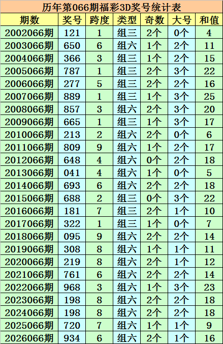 开奖转头:福彩3D第2026066期奖号:934。