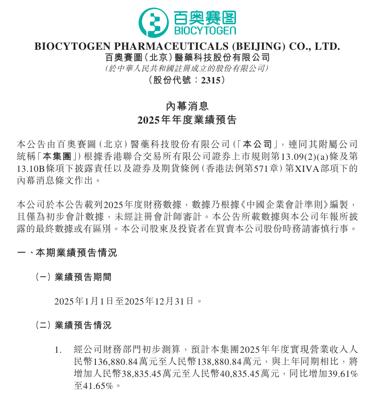 1月29日,诺诚健华和百奥赛图发布2025年业绩预告。